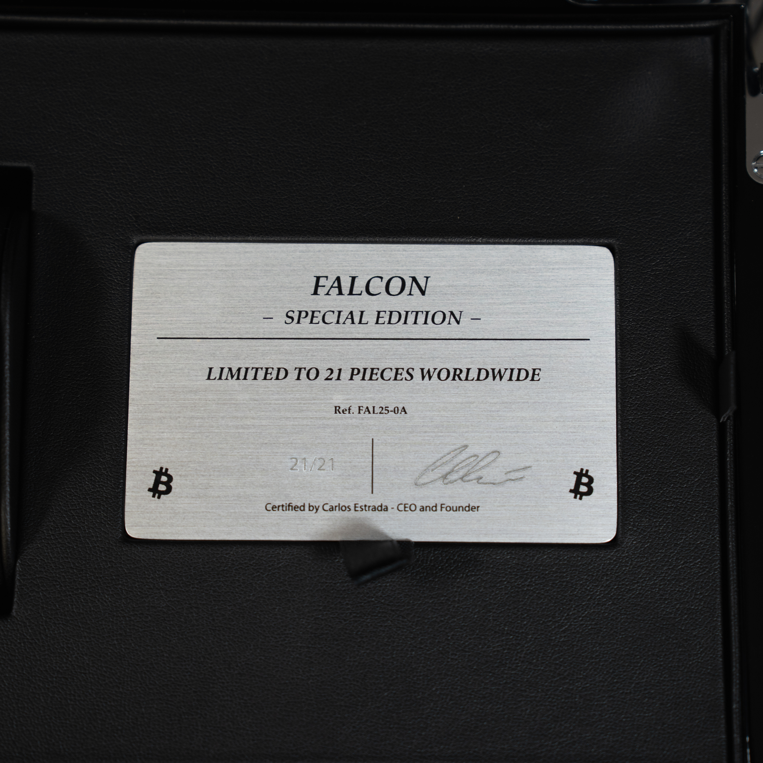 Inspired by Bitcoin’s fixed supply, the Falcon Edition was produced in a quantity that will never be repeated. Each piece is individually numbered and permanently recorded.