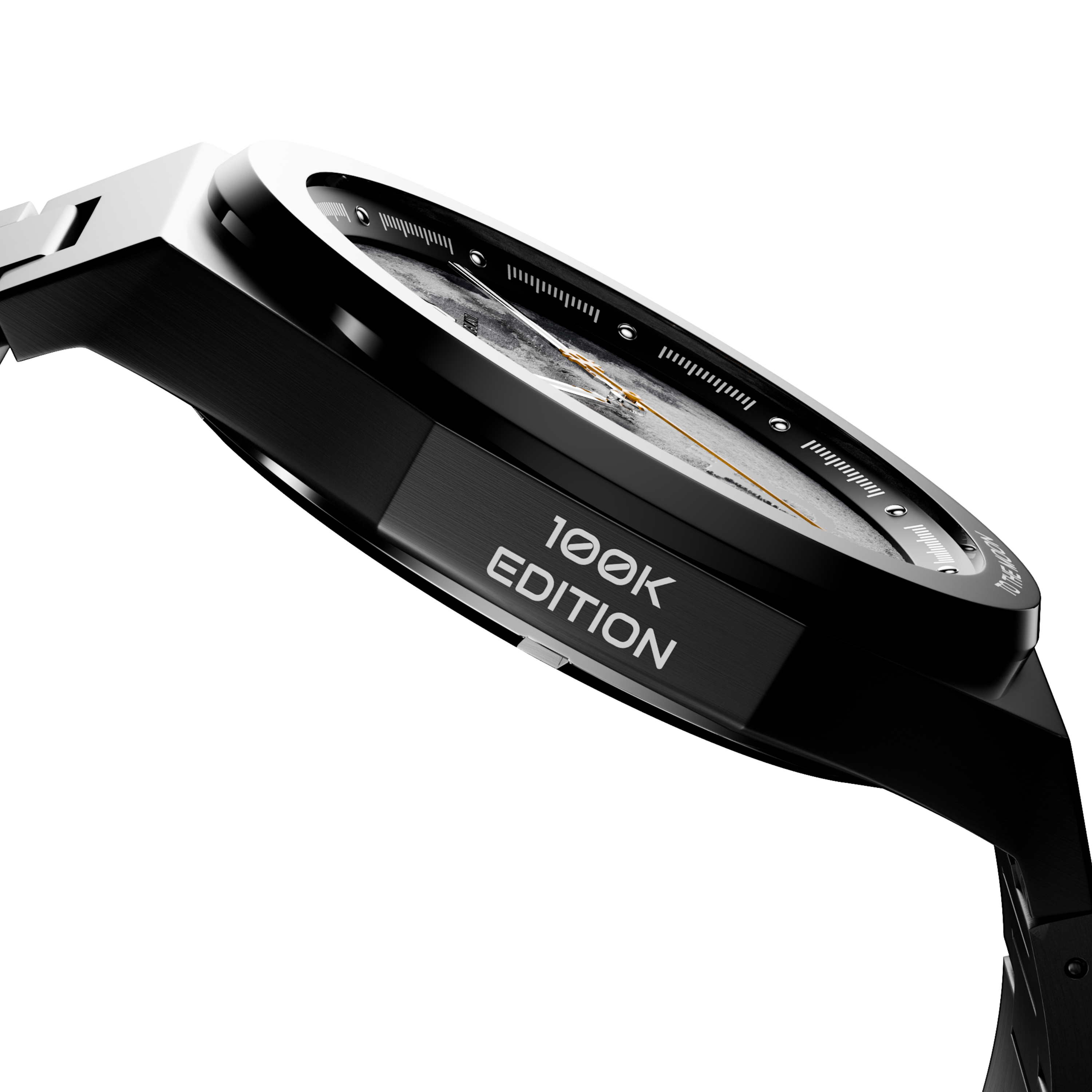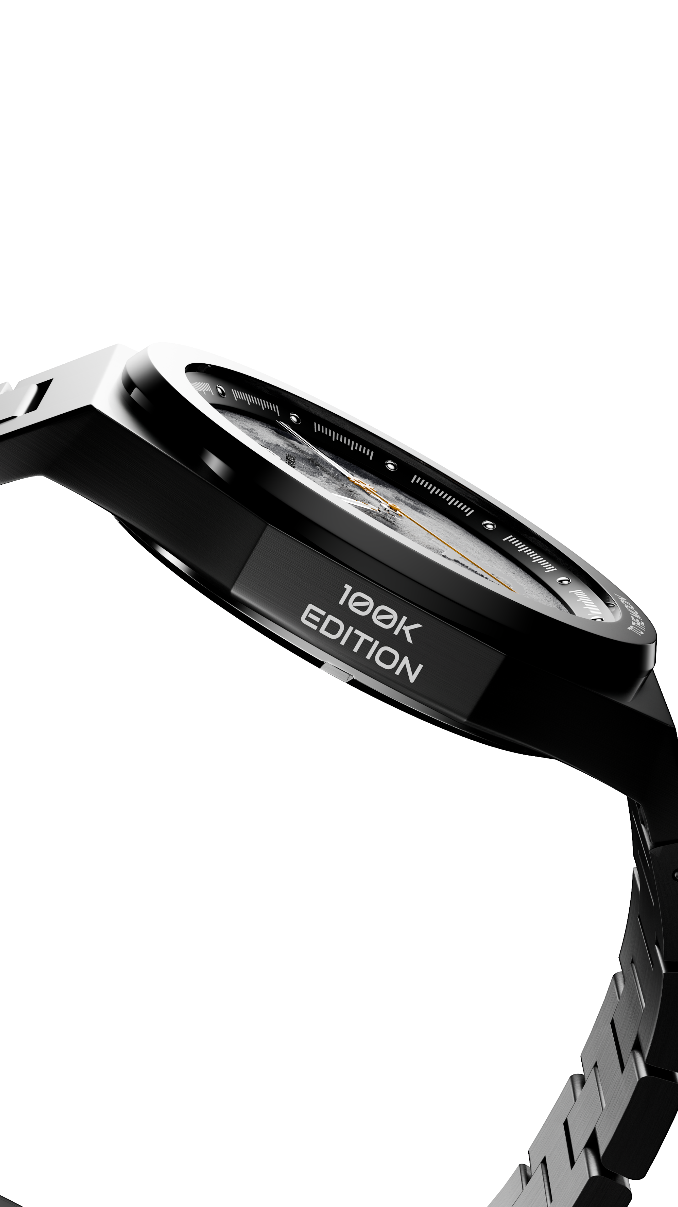The 100K Edition comes with a premium collector's gift box, a premium leather band, and a physical certificate of authenticity signed by our founder.