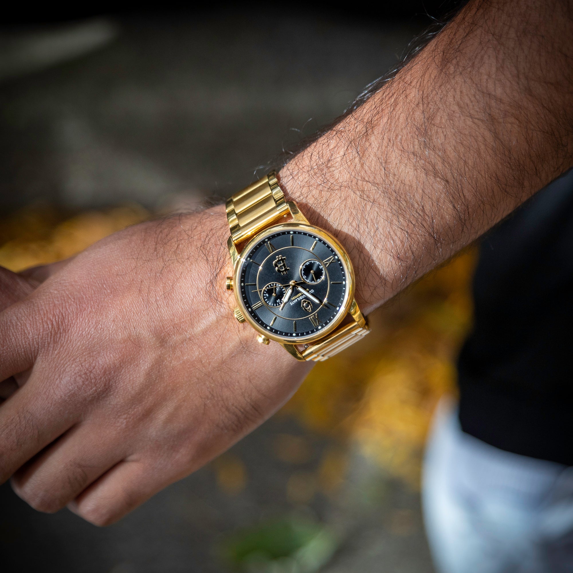 Dive into a seamless blend of traditional craftsmanship and digital innovation with Coin Vigilante's new Gold Edition Bitcoin Watch. This is not just a timepiece; it's a luxurious representation of the 'Digital Gold' era, brought to life in a 41mm chronograph watch featuring a polished gold case and gold-plated accents. This limited edition masterpiece symbolizes your connection to the Bitcoin world while showcasing unparalleled attention to design and detail.