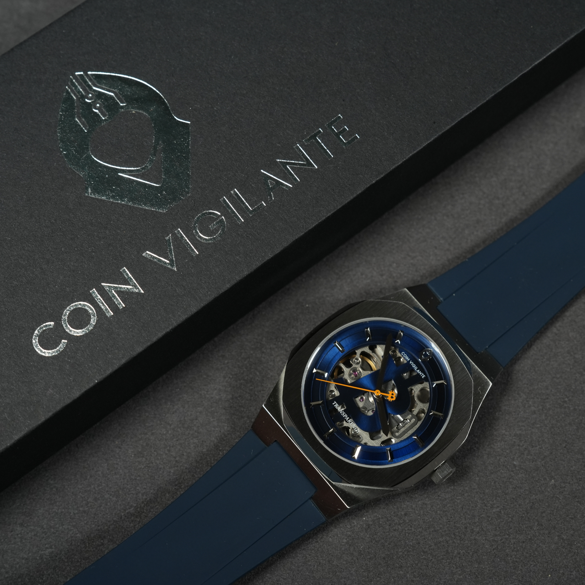 Housed in a silver stainless steel case, this new Transparency Variant pairs its polished exterior with a striking deep blue dial — a color that represents stability, conviction, and long-term belief. Blue is the color of calm in every market cycle, chosen for Bitcoiners who understand the mission doesn’t change with volatility.